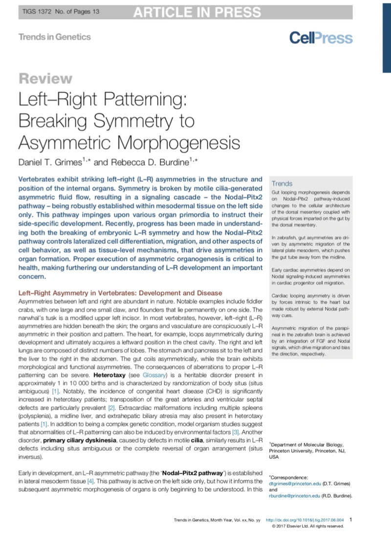 DT Grimes*, CW Boswell*, NFC Morante*, RM Henkelman, RD Burdine, B Ciruna
