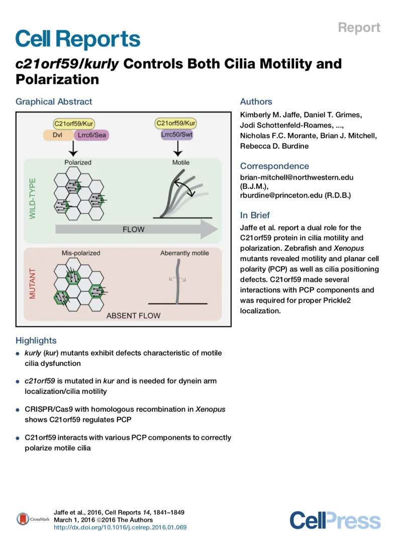 c21orf59/kurly controls both cilia motility and polarization