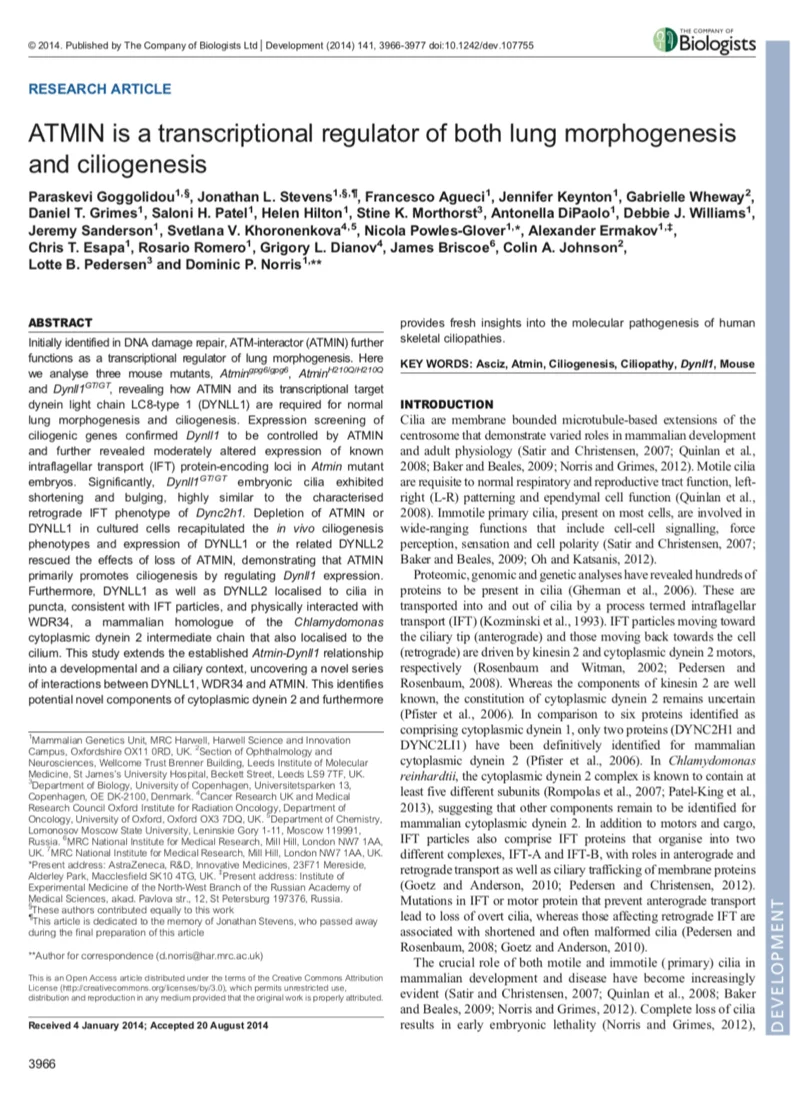 P Goggolidou*, JL Stevens*, F Agueci, JL Keynton, G Wheway, DT Grimes, SH Patel, H Hilton, SK Morthorst, A DiPaolo, DJ Williams, J Sanderson, S Khoronenkova, N Powles-Glover, A Ermakov, C Esapa, R Romero, GL Dianov, J Briscoe, C Johnson, LB Pedersen, DP Norris