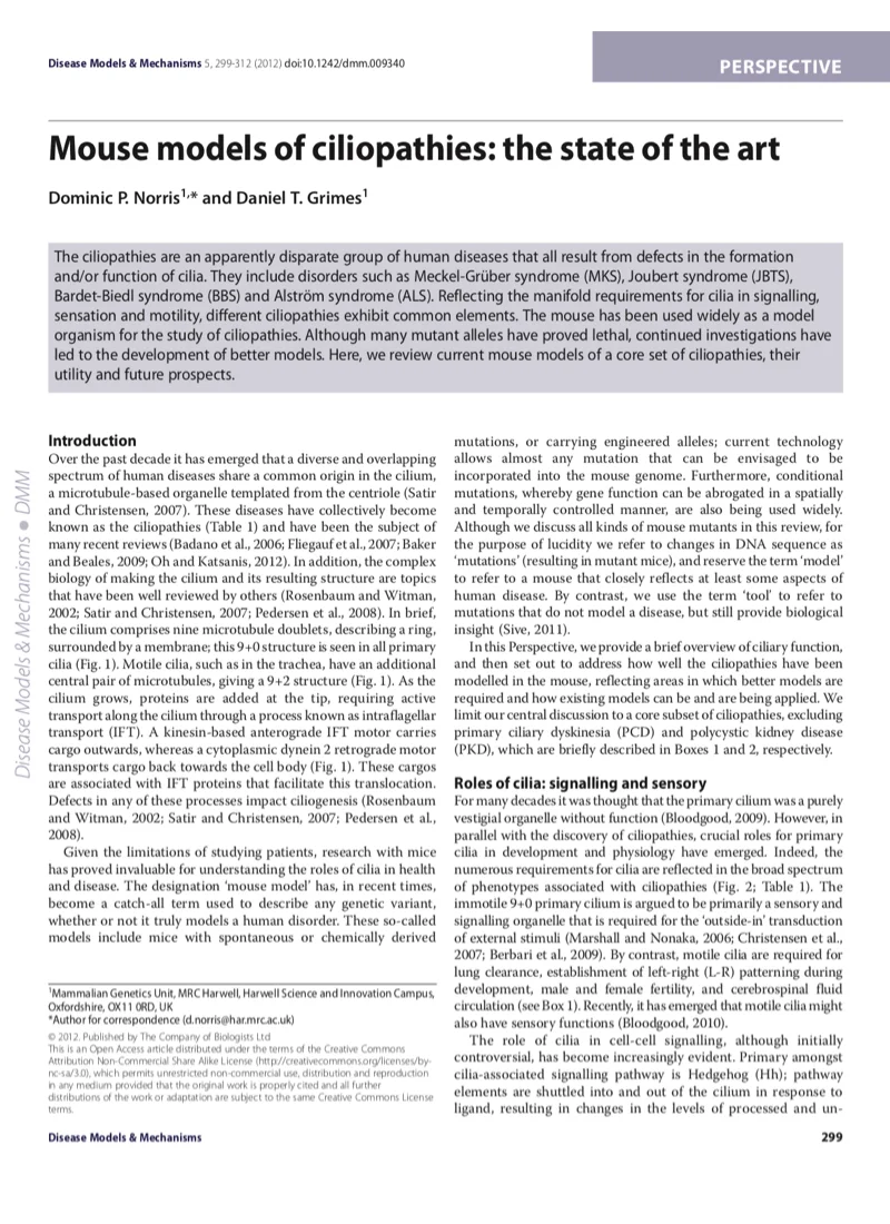 Dis. Models Mech. 5(3):299-312 (2012)