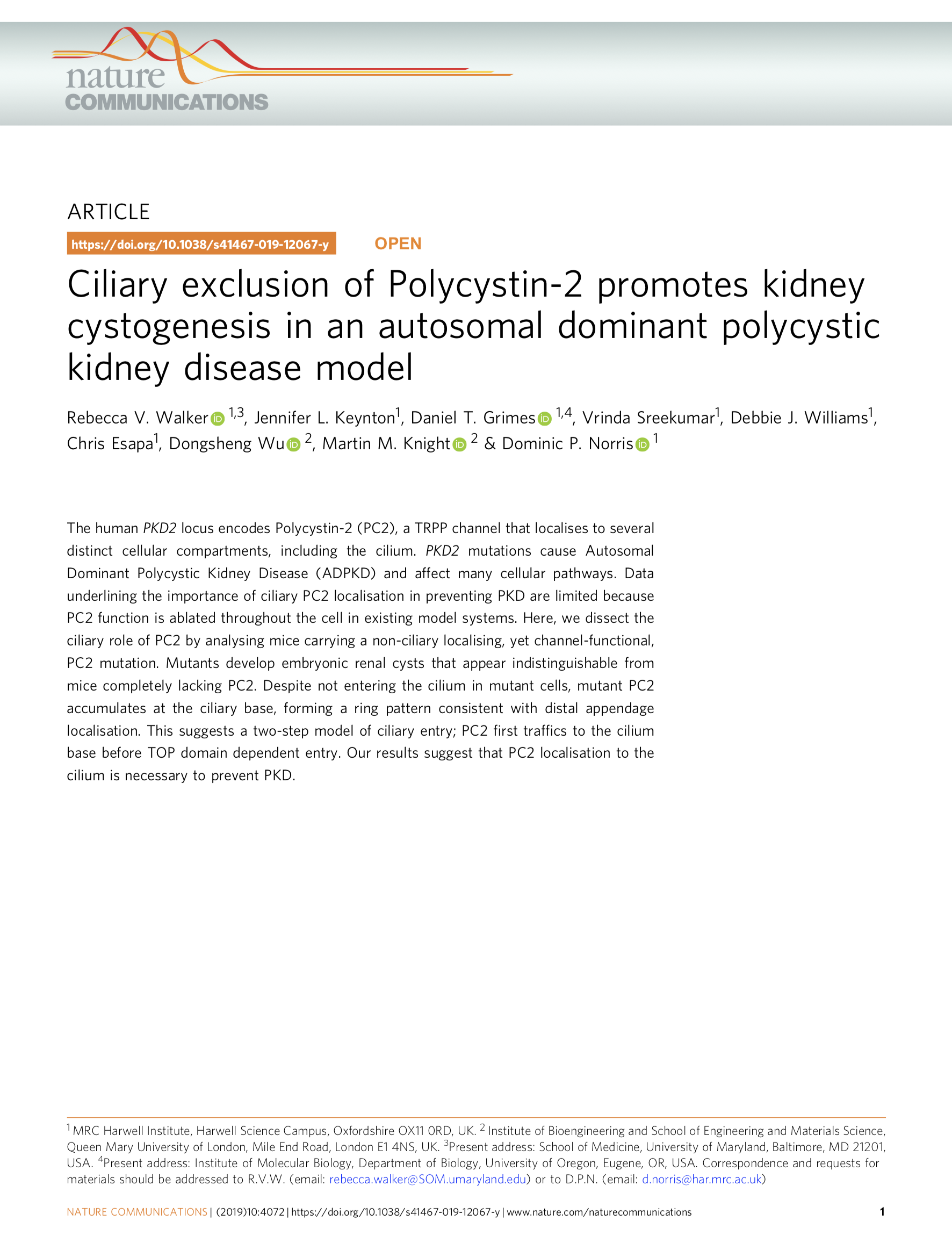 RV Walker, JL Keynton, DT Grimes, V Sreekumar, DJ Williams, C Esapa, D Wu, MM Knight, DP Norris